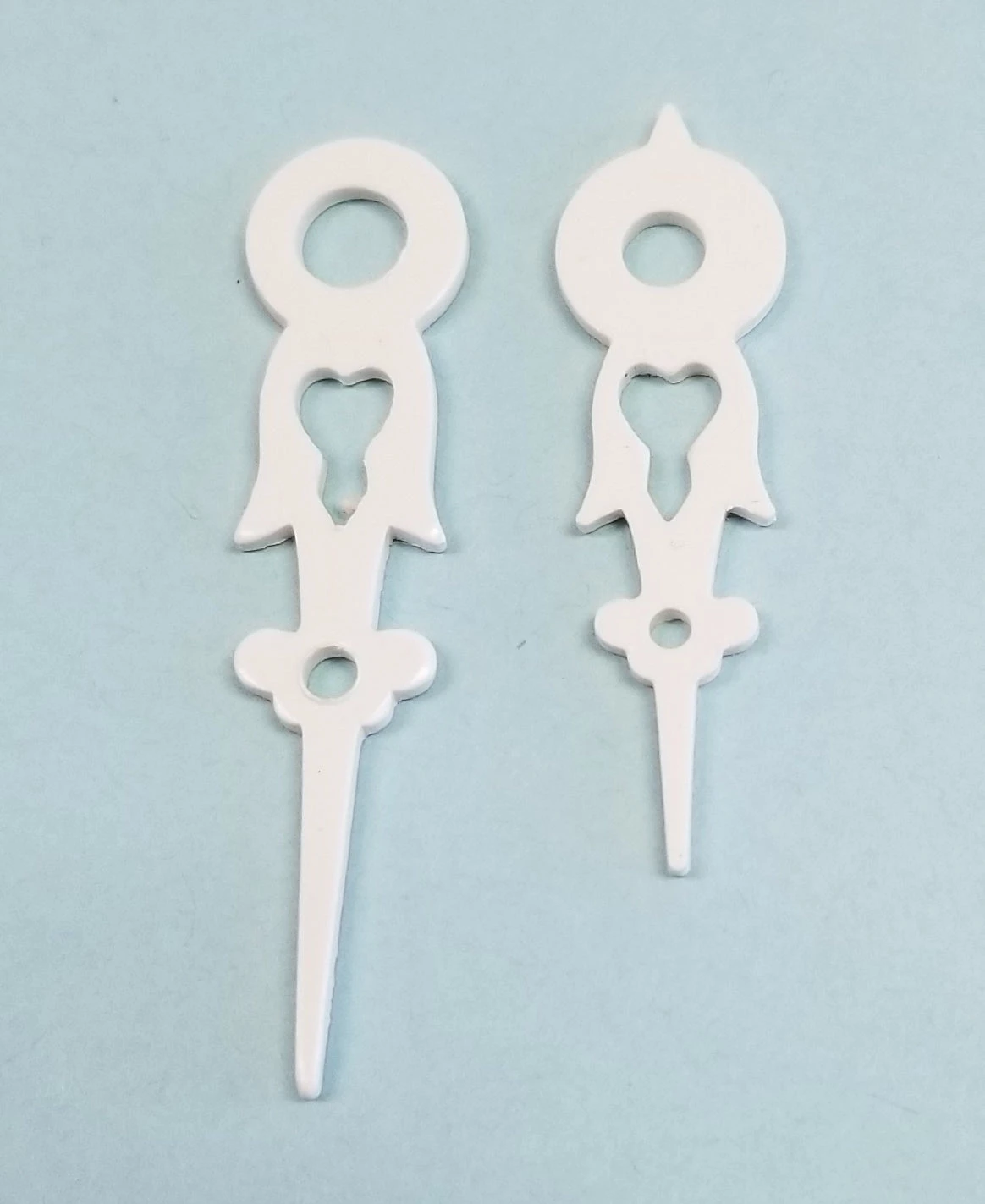 AH09 Fits 10cm dial. Minute hand length is approximately 1.75″. White Plastic. Sold in pairs. Minute hand length is measured from the center of the hole to the tip of the hand.