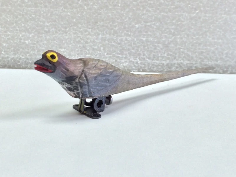 Painted wooden cuckoo bird with metal base.