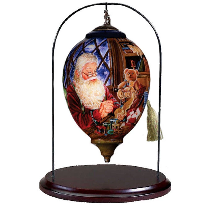 Ornament NOT included. Walnut finished wood base with antique gold finished metal.