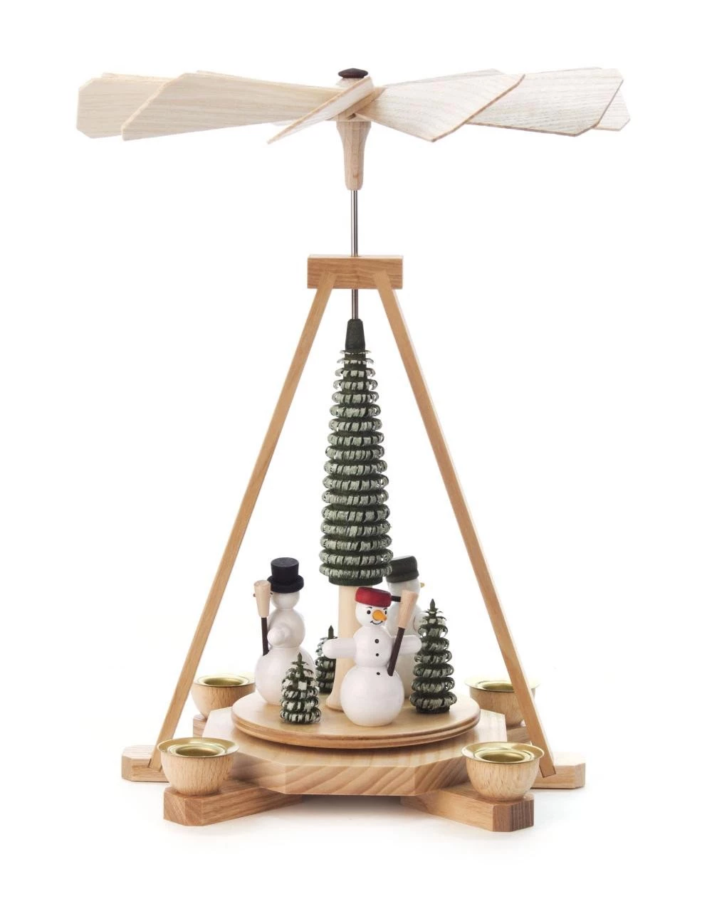 Authentic Wooden German Pyramid. This pyramid features one platform with four candle holders. When the candles are lit, the scene on the pyramid will begin to move as the heat from the candles begins to rise. Requires 4 – 14mm Candles – Not Included.