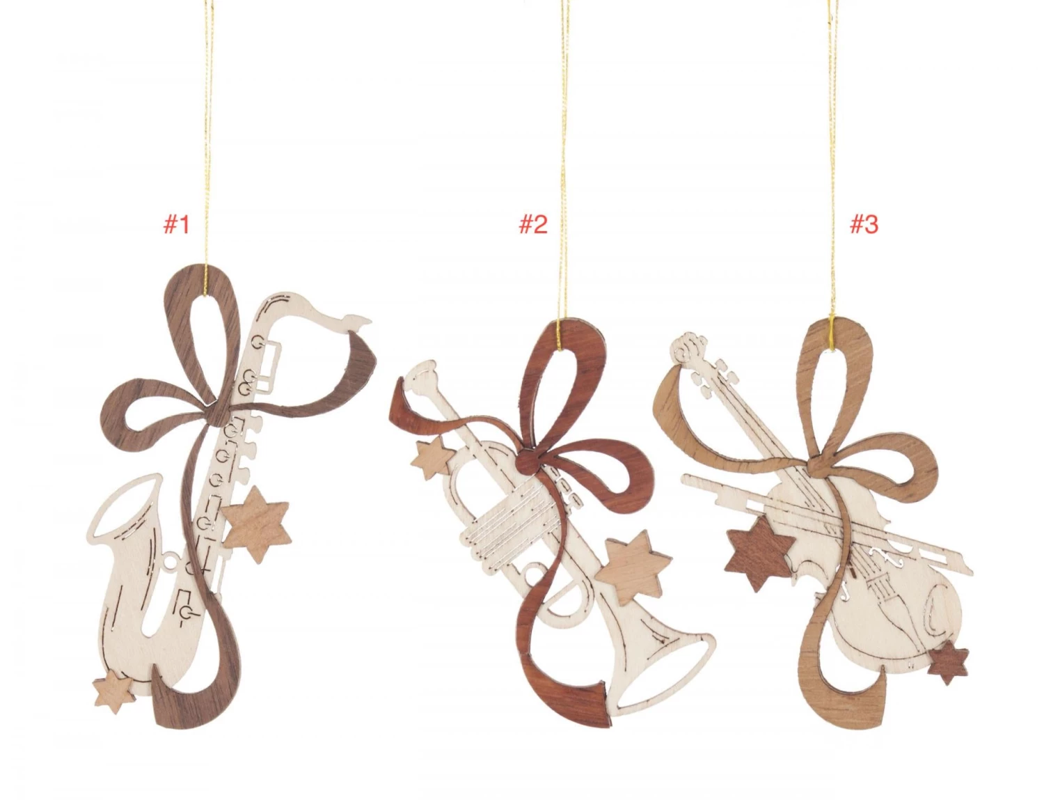 199/988 – Wooden Musical Instrument Ornaments (Sold Individually)