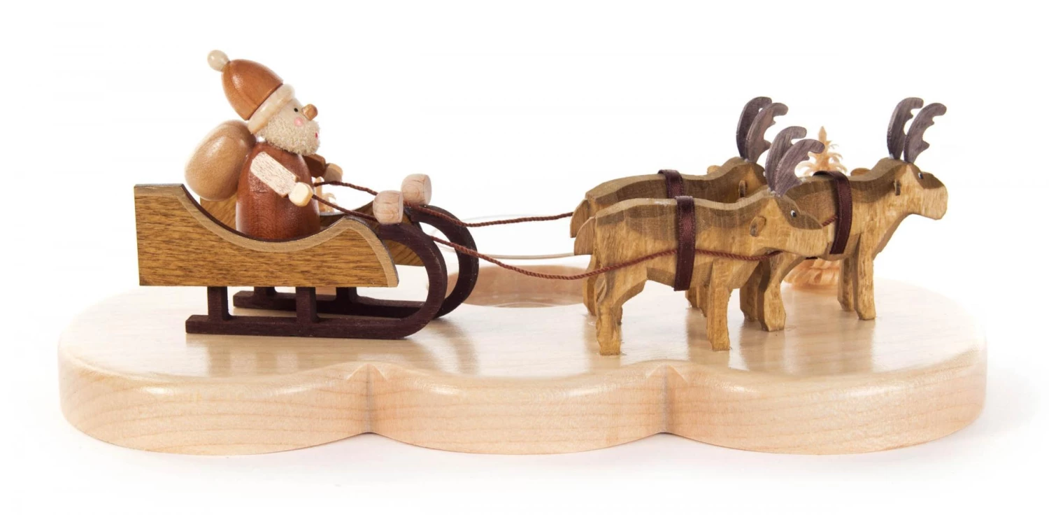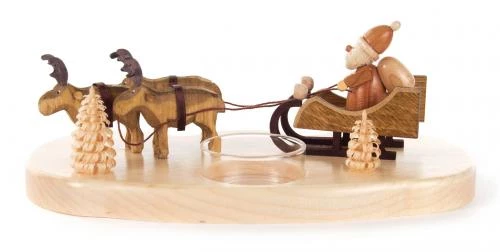 Authentic Wooden Tealight Holder with Santa, Reindeer & Tree