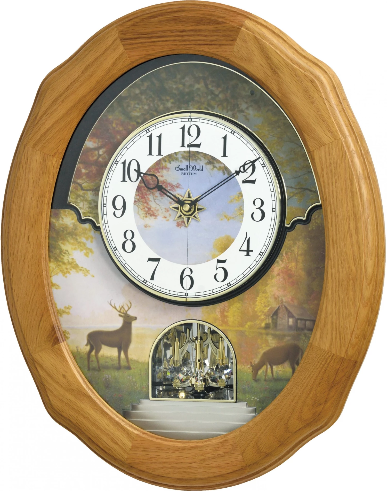 The Joyful Sunset is state-of-the art creation comprised of 30 melodies. This clock features an all new song list, comprised of 12 Christian Hymns, 12 Classical Melodies & 6 Christmas favorites. On the hour, the dial splits into two and rotates 360 degrees while playing 1 of 30 melodies. The beautiful solid oak frame along with the Swarovski crystals and gold and silver accents make this clock a truly elegant addition to any home.
