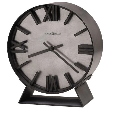 This striking, industrial metal mantel clock features a deep, round bent iron frame with an aged silver finish. The dial features wrought-iron Roman numeral and bar hour markers that are suspended in front a machined steel background. Contrasting aged silver-finished hour and minute hands complete the look. Felt pads protect your mantel or tabletop. Quartz, battery-operated movement requires one AA sized battery (Included).