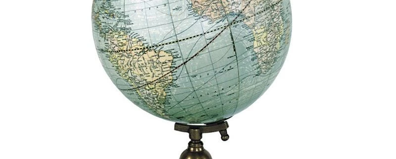 GL026 – 1921 USA Globe, Weber Costello A Contemporary Classic. 1920’s Weber Costello globe is displayed on ebonized rosewood stand accented in nickel-plated brass. Colored gores are applied to the globe core by hand using authentic construction & detail.