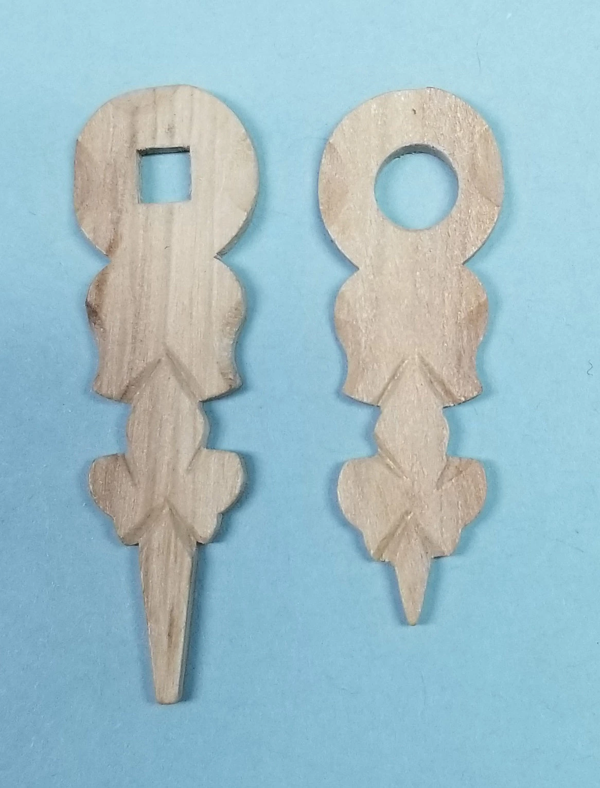 Wooden. Hand Carved. Sold in pairs. 4 1/10mm Square Hole on minute hand.