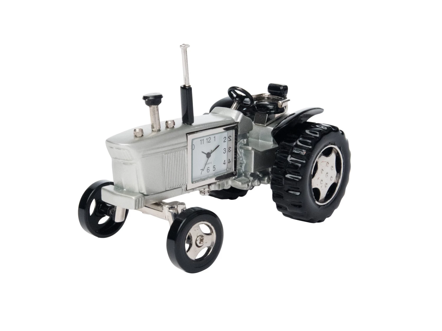 Miniature tractor clock with quartz clock. Made of zinc alloy. Makes a great gift for tractor lovers. Elegant weighted clock made with great detail.