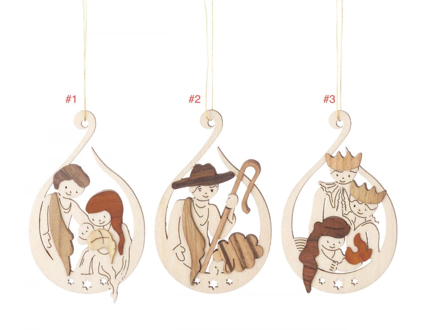 Authentic Wooden Nativity Scene Ornaments. These wooden ornaments are sold individually. You Must Choose One of the Three Options Below.