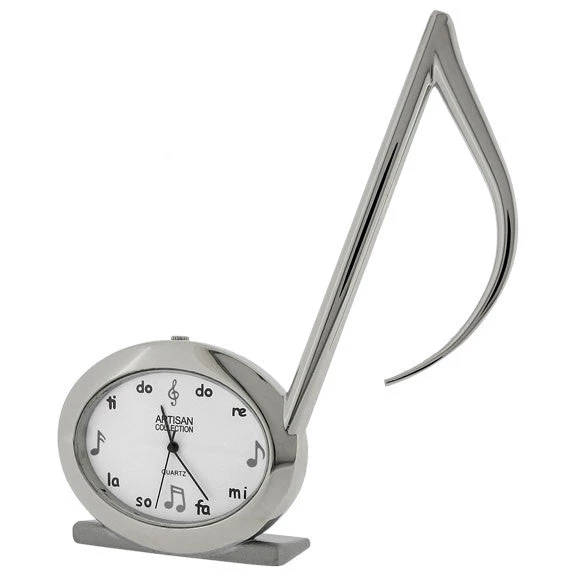 Refined, sharp and simple, it is cast in metal with a shiny silver finish. Features a quality quartz timepiece with hour/minute and sweep second hands and musical symbols with the words “do, re, mi, fa, so, la, ti, do” as the hour markers.