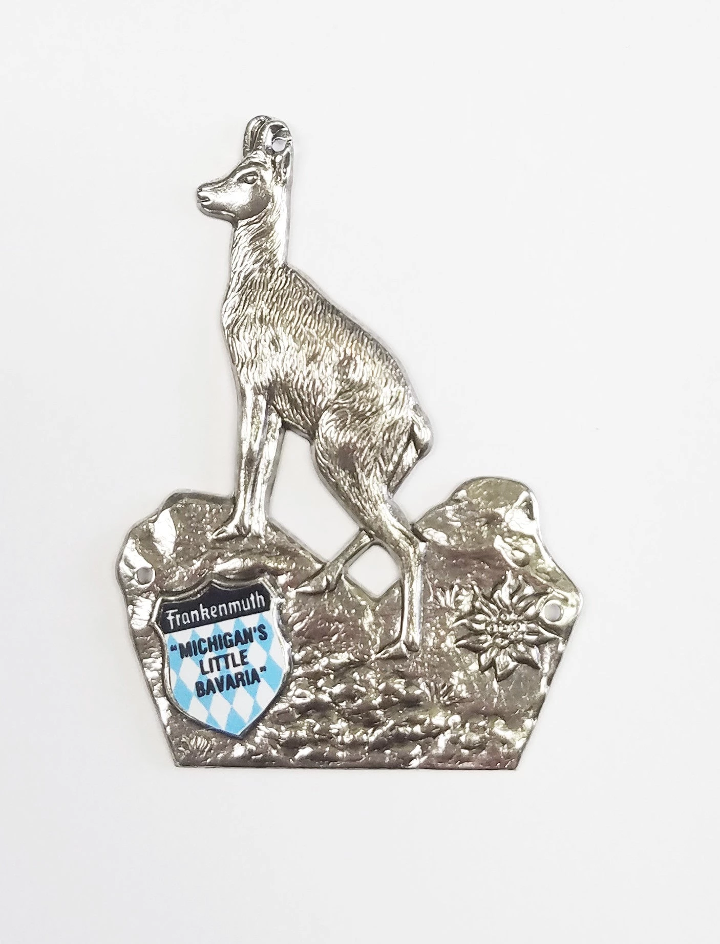 This metal walking stick badge includes nails to mount to your walking stick. It also features Frankenmuth’s “Michigan’s Little Bavaria” badge.