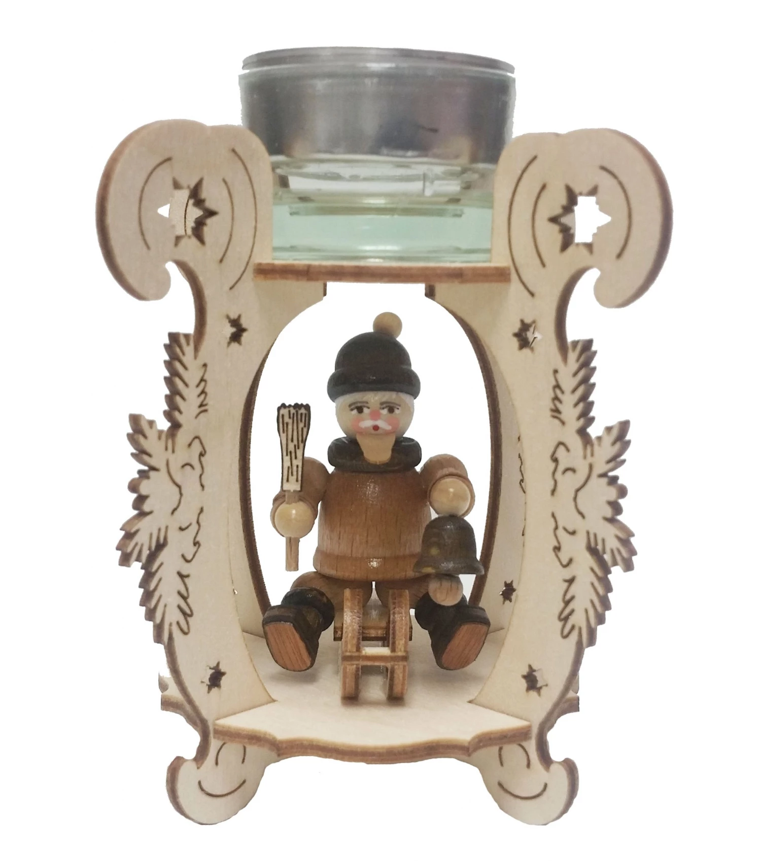 Wooden tea light holder with a man on a sleigh. Tea light included.